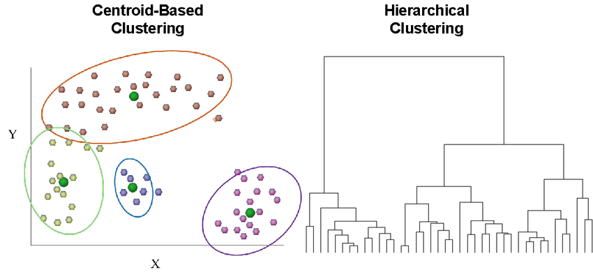 This is a bottom-up approach to clustering, where objects are assigned to non-overlapping clusters based on their proximity to a central point, called a centroid. The most commonly centroid-based clustering algorithms include k-means, k-medoids, and fuzzy c-means.